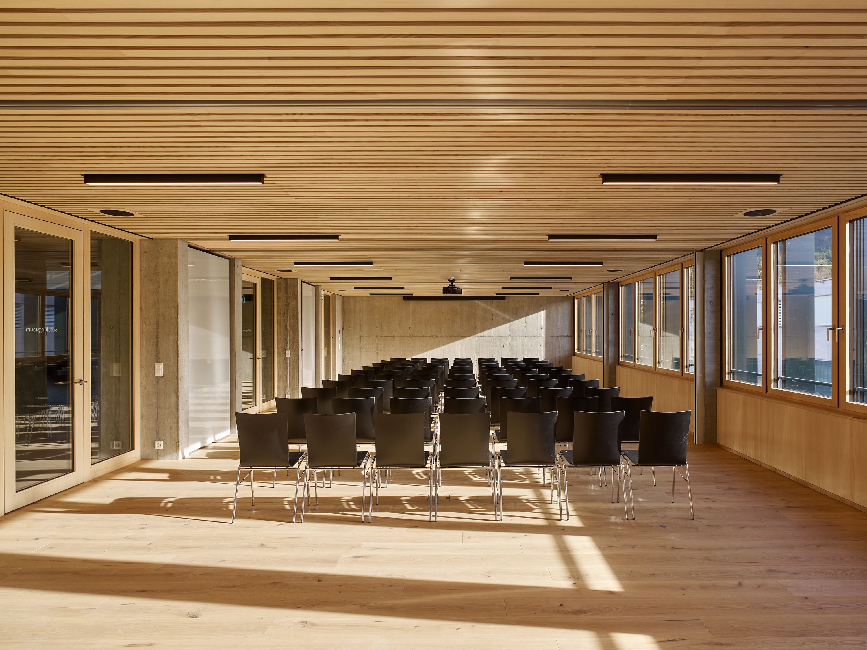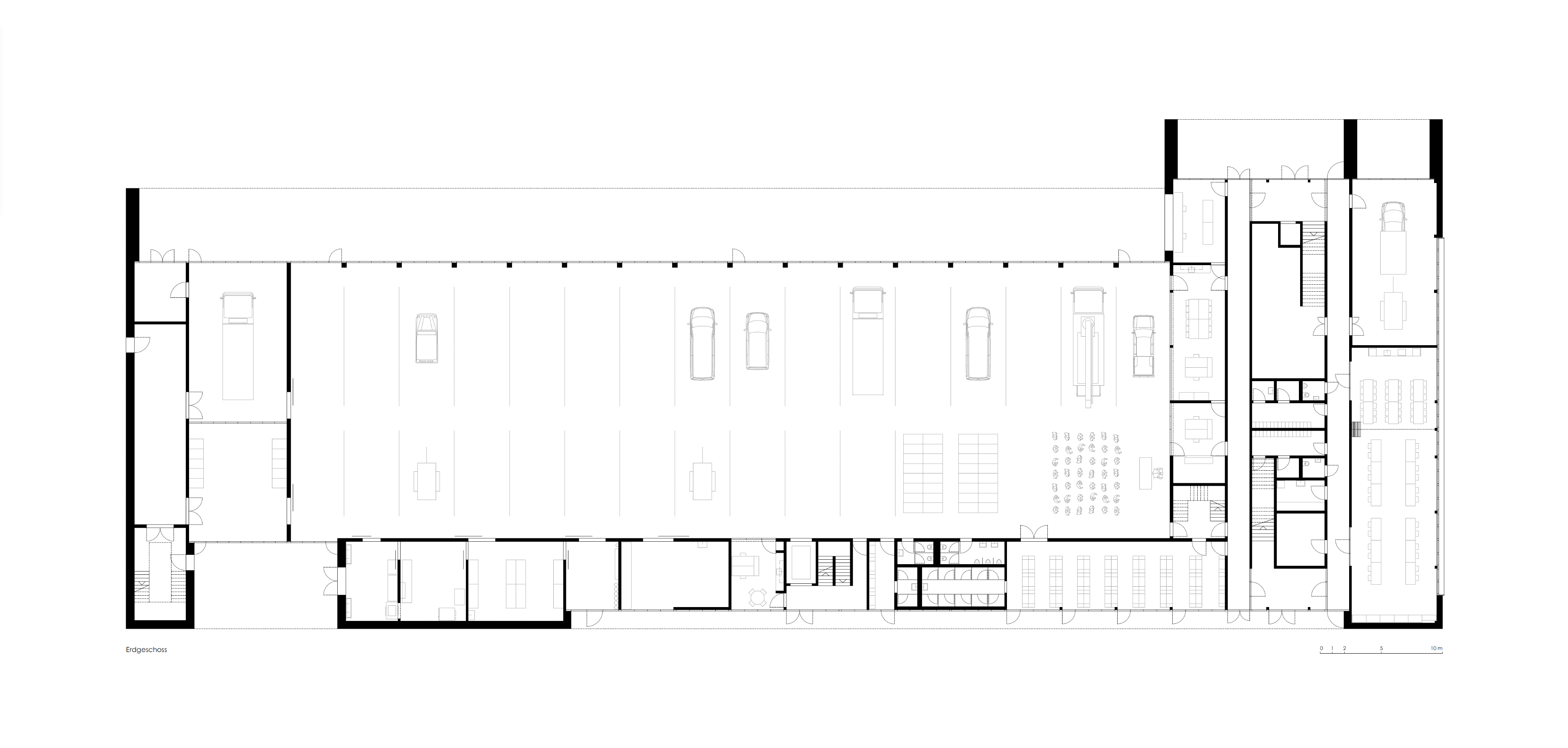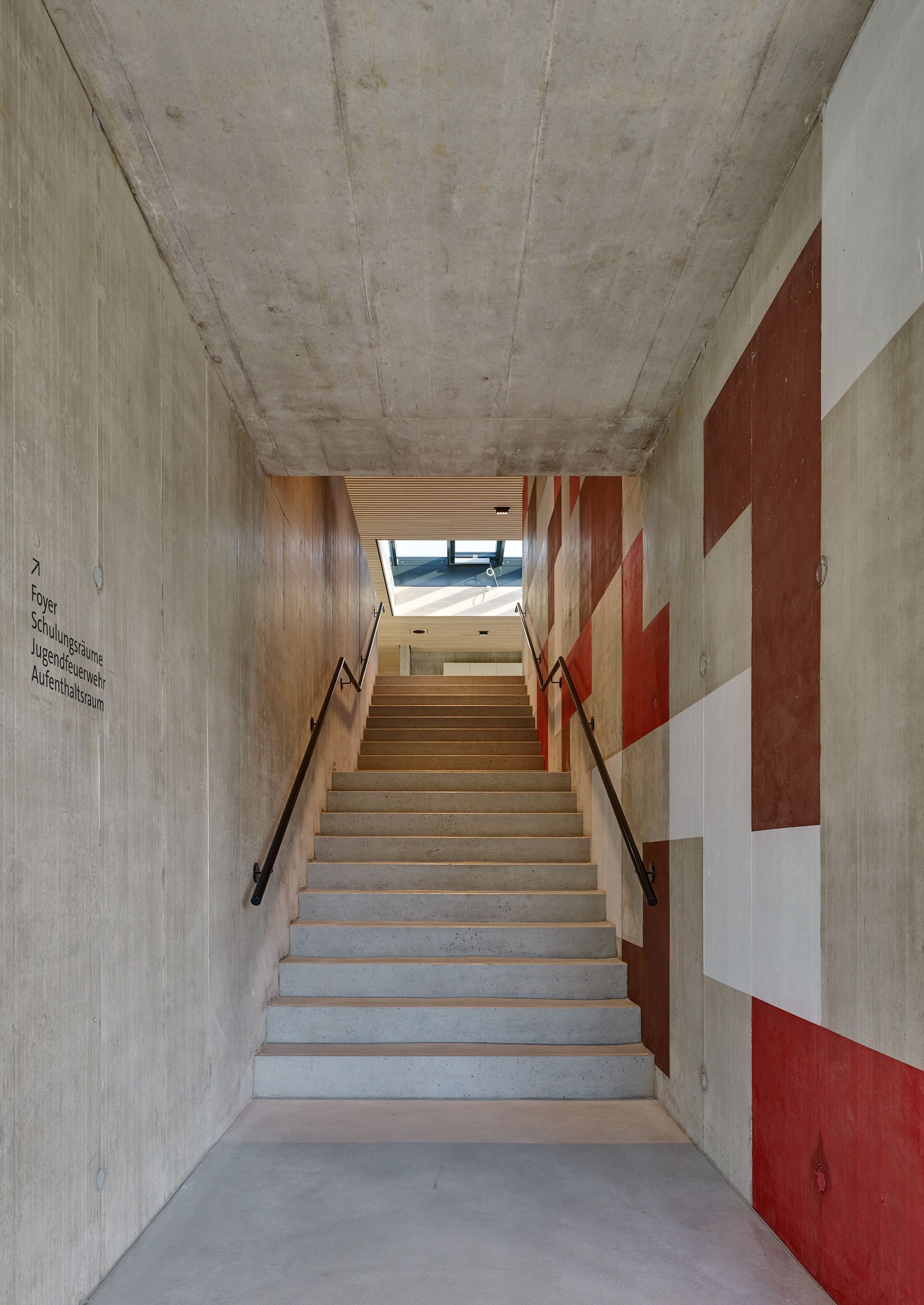 Im neuen Feuerwehrdepot befinden sich die Feuerwehr als Hauptnutzer sowie der Samariterverein. Das Zentrum des Neubaus bildet die Fahrzeughalle mit 16 Stellplätzen. Die weiteren Funktionsbereiche wie Einsatzzentrale, Büros, Mannschaftsräume, Schulungsbereiche und Werkstätten sind peripher an der Fahrzeughalle angedockt. Die Nutzungsbereiche Feuerwehr und Samariter werden über dieselben Zugänge erschlossen, sind aber räumlich getrennt.Der Neubau wurde als Beton-Holz-Hybridbau erstellt. Die Planung erfolgte mit der BIM Methode.